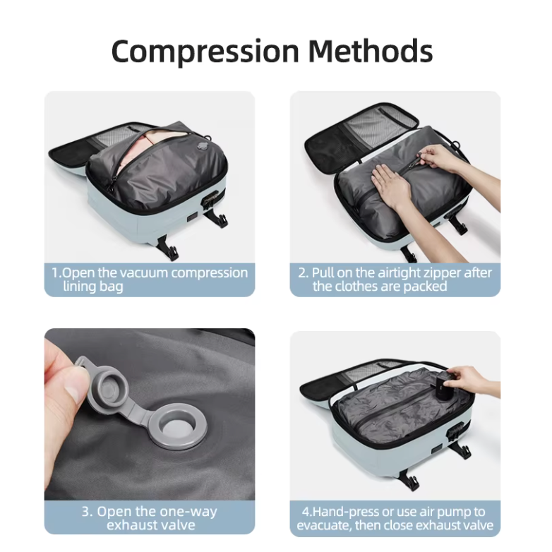 ✔️ Vakuum-Kompression – reduziert das Volumen deiner Kleidung
